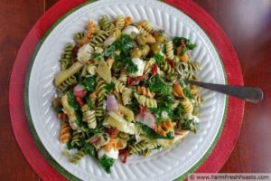 Home antipasta salad with kale and radish