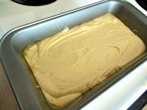 Pour the batter into a prepared cake pan. Bake for 50 minutes, or until a toothpick inserted comes out clean.
