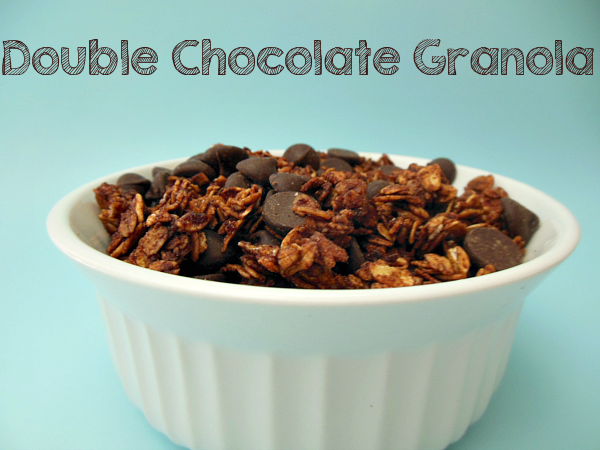 Zach and I found this really great chocolate granola at the grocery store last week. Unfortunately, it was about $5 for a tiny bag. But we wanted to try it because it was something we had never had before (I thought granola only came in honey nut & raisin, honestly)…and then after I tasted it, I thought, “I can make that.” So I did. And here it is!
