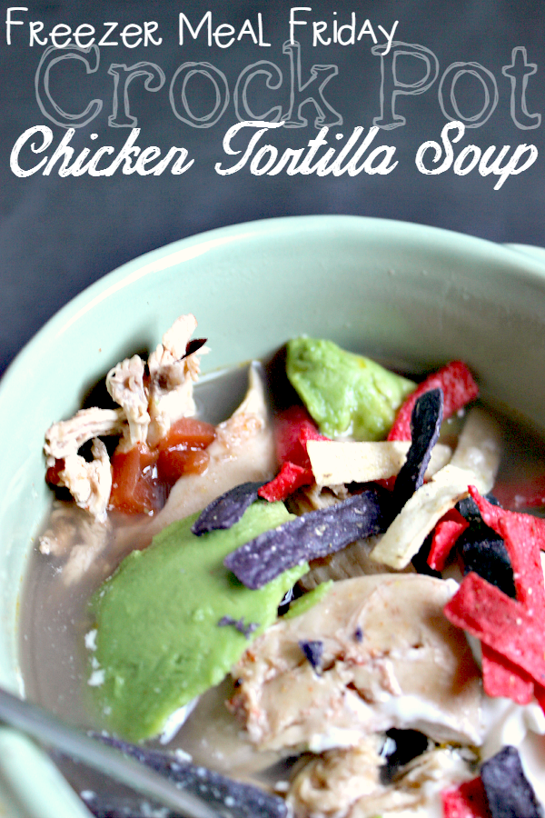 A healthy, low-calorie, high protein, savory chicken tortilla soup made in a crockpot. Great as a freezer meal!