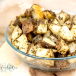 Cut the potatoes into 1-inch cubes and toss into a bowl with the oil, garlic, parsley, salt, and pepper.